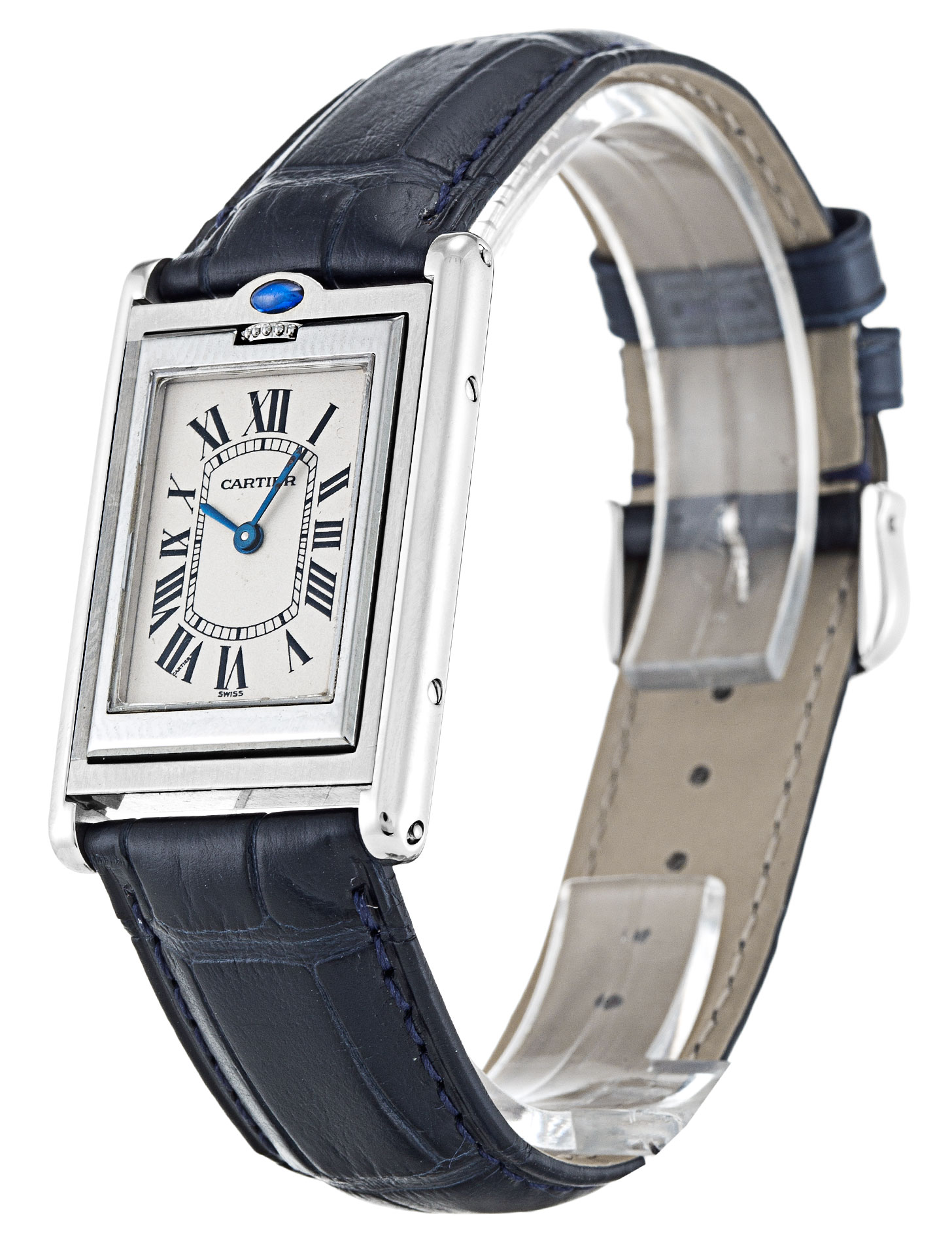 De Cartier Tank Basculante W1011258 is een uniseks horloge met een kwartsbeweging en een waterdichte zilveren romeinse wijzerplaat. Het horloge heeft een kastgrootte van 23 mm en is gemaakt van roestvrij staal, met een krokodillenblauwe band. Het is echter belangrijk op te merken dat de kwaliteit van het materiaal niet helemaal aan de verwachtingen voldoet, aangezien het rubberachtig is en snel kan verslijten. Het horloge heeft een eenvoudig en goedkoop uiterlijk, geschikt voor mensen die op zoek zijn naar een betaalbare en functionele optie.